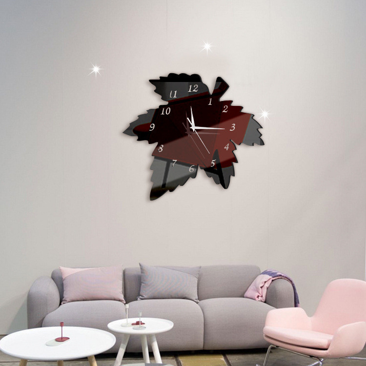Horloge murale créative en acrylique, feuille d'érable, décoration pastorale, horloge silencieuse pour chambre à coucher, DIY bricolage