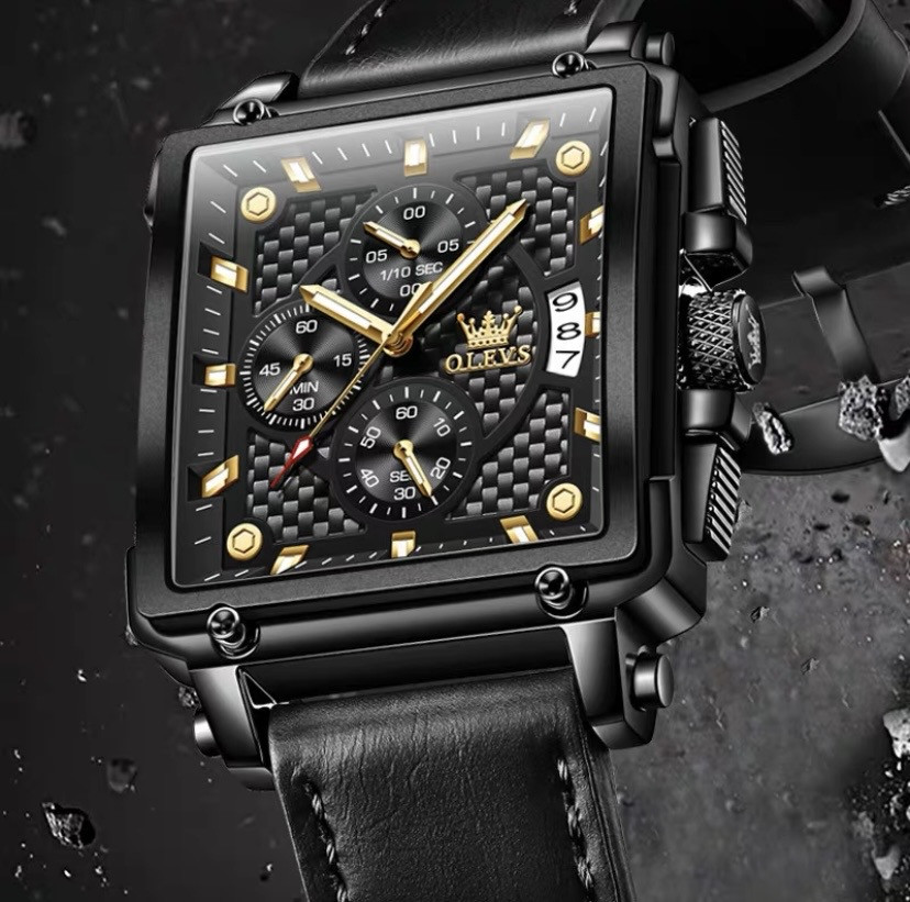 Montre pour homme alpha avec une haute apparence et un style européen - Montre des forces spéciales en cuir véritable coquille surdimensionnée lumineuse