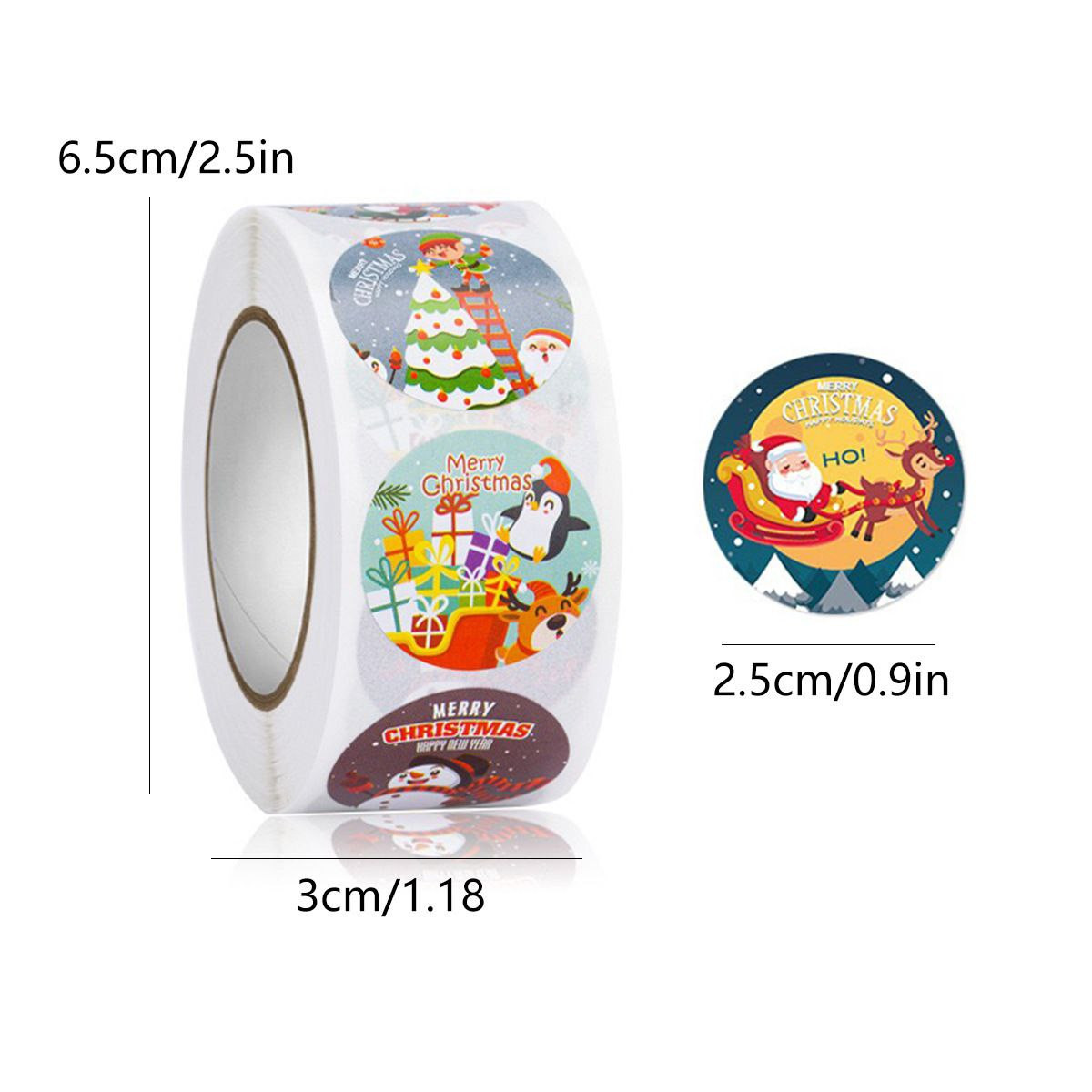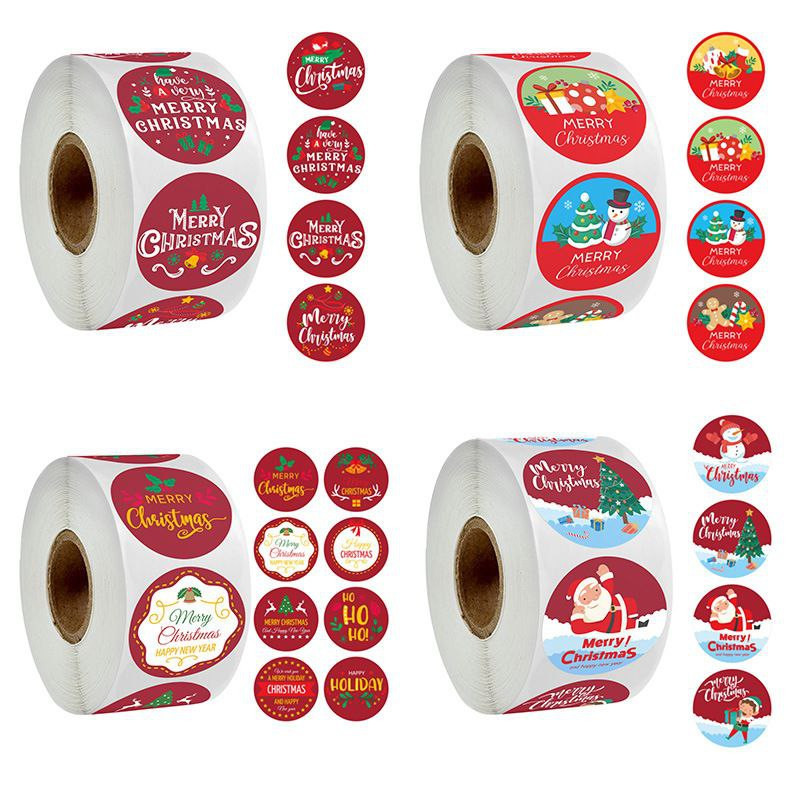 Offre spéciale de 500 autocollants cadeaux de Noël ronds imprimés en rouleau d'étiquettes autocollantes décoratives 2.5cm/500