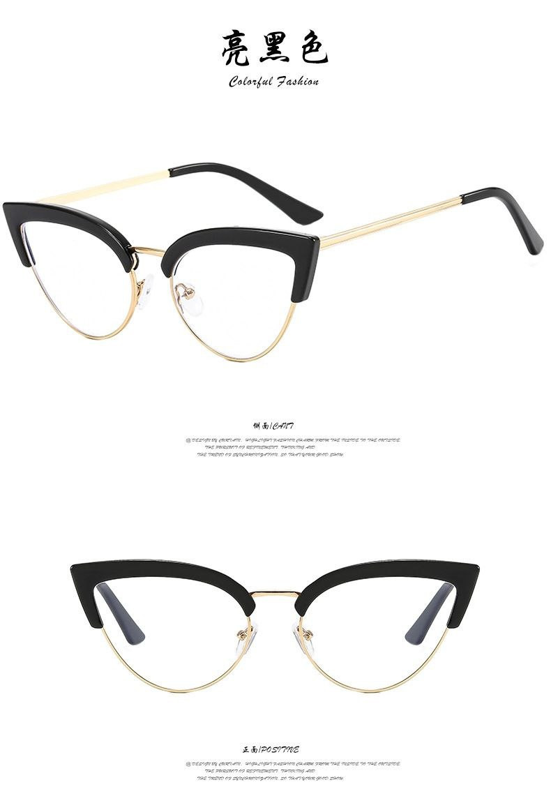 Nouvelle monture de lunettes anti-lumière bleue européenne et américaine, monture de lunettes transfrontalière pour femmes à miroir plat tendance à demi-monture personnalisée