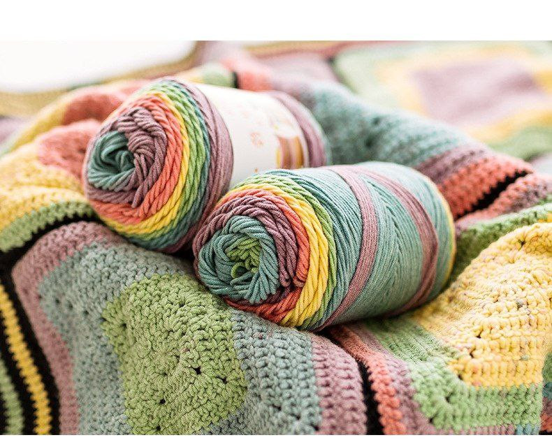 Laine 5 brins arc-en-ciel coton tricoté à la main poupée en laine oreiller couverture lait coton laine 100g