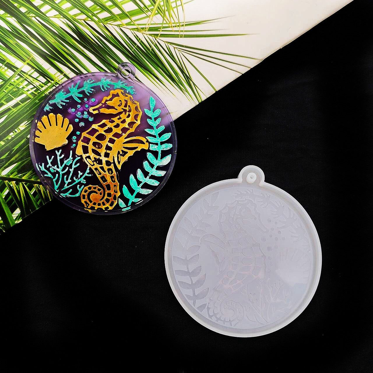 DIY7 – moule à colle pour étiquette ronde marine, étoile de mer, hippocampe, tortue de mer, étoile de mer et autres animaux marins, moule à pendentif