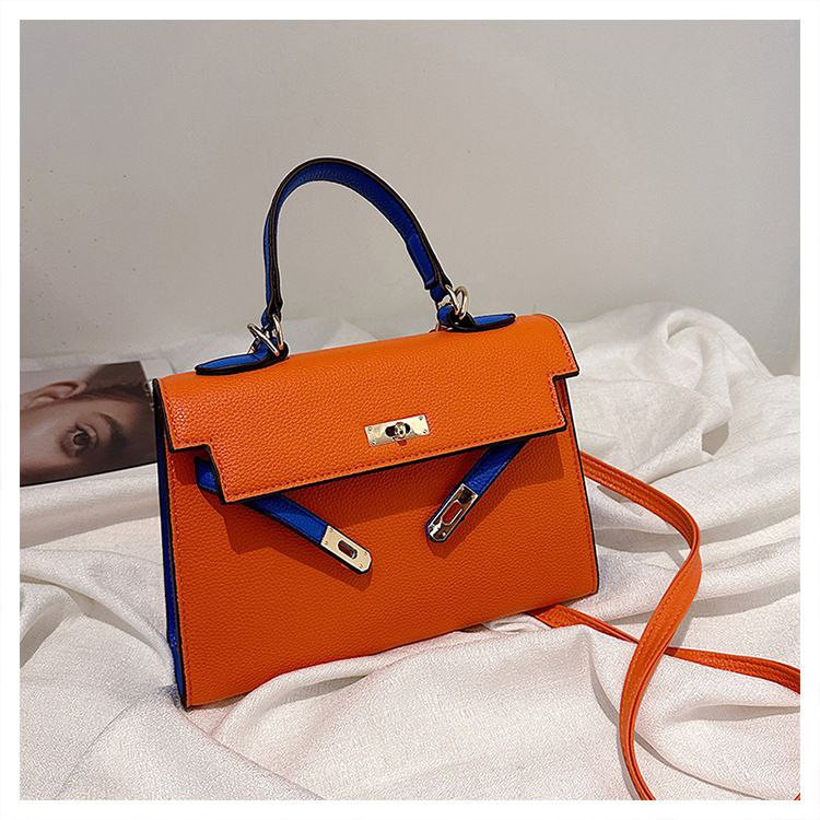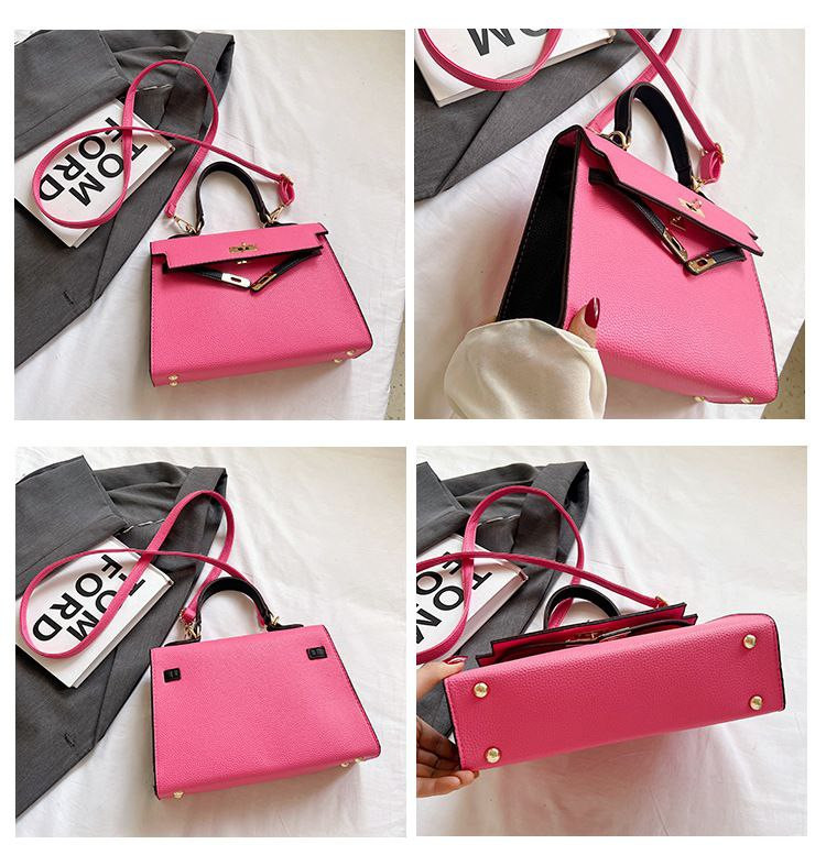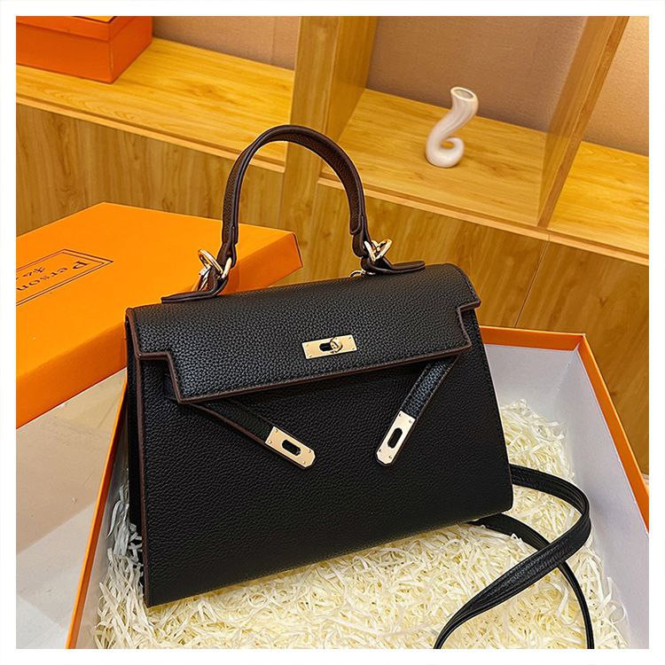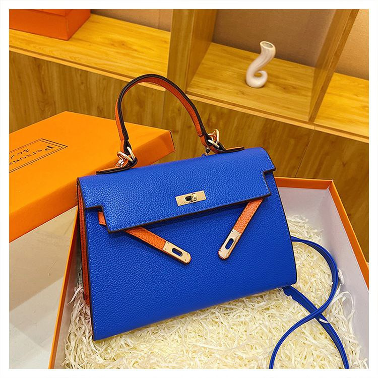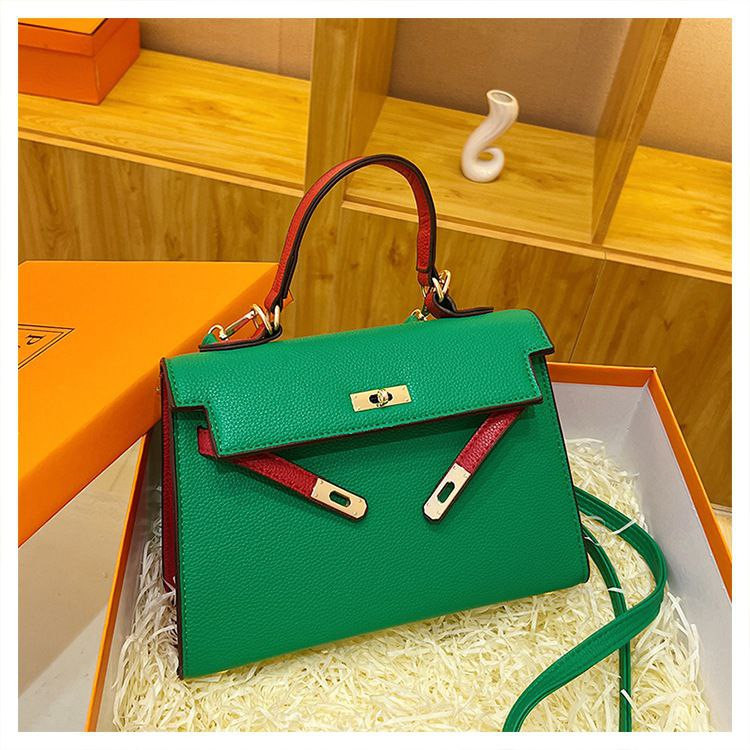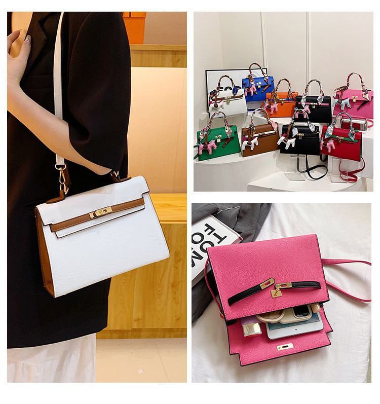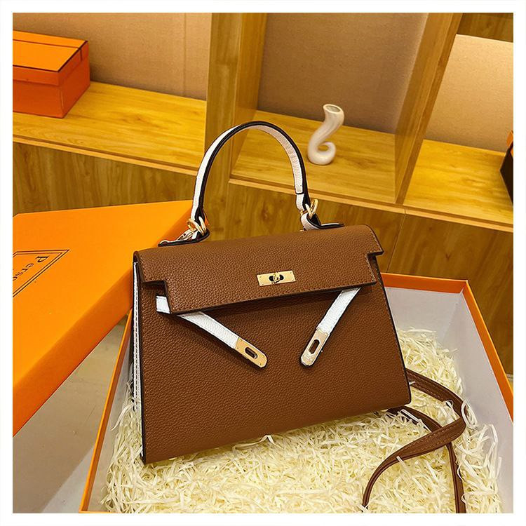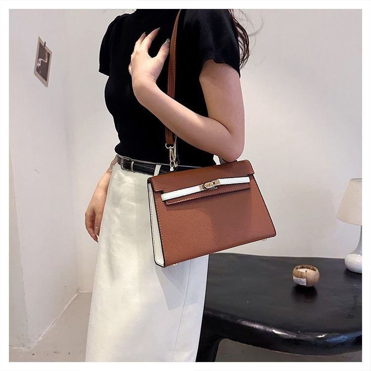2024 nouveau sac Kelly transfrontalier en platine pour femme sac à bandoulière de célébrité d'Internet couleur contrastée à texture polyvalente