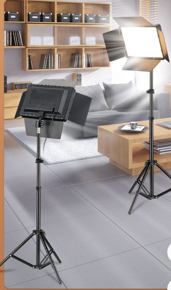 Lumière plate carrée à 4 feuilles + trepied de 2m1 de remplissage LED de 10 pouces, beauté, diffusion en direct, lumière de remplissage, équipement de photographie, éclairage vidéo