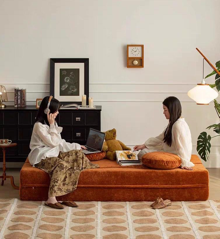 Canapé-lit en tissu antique, module pour petit appartement, salon pliable, double usage