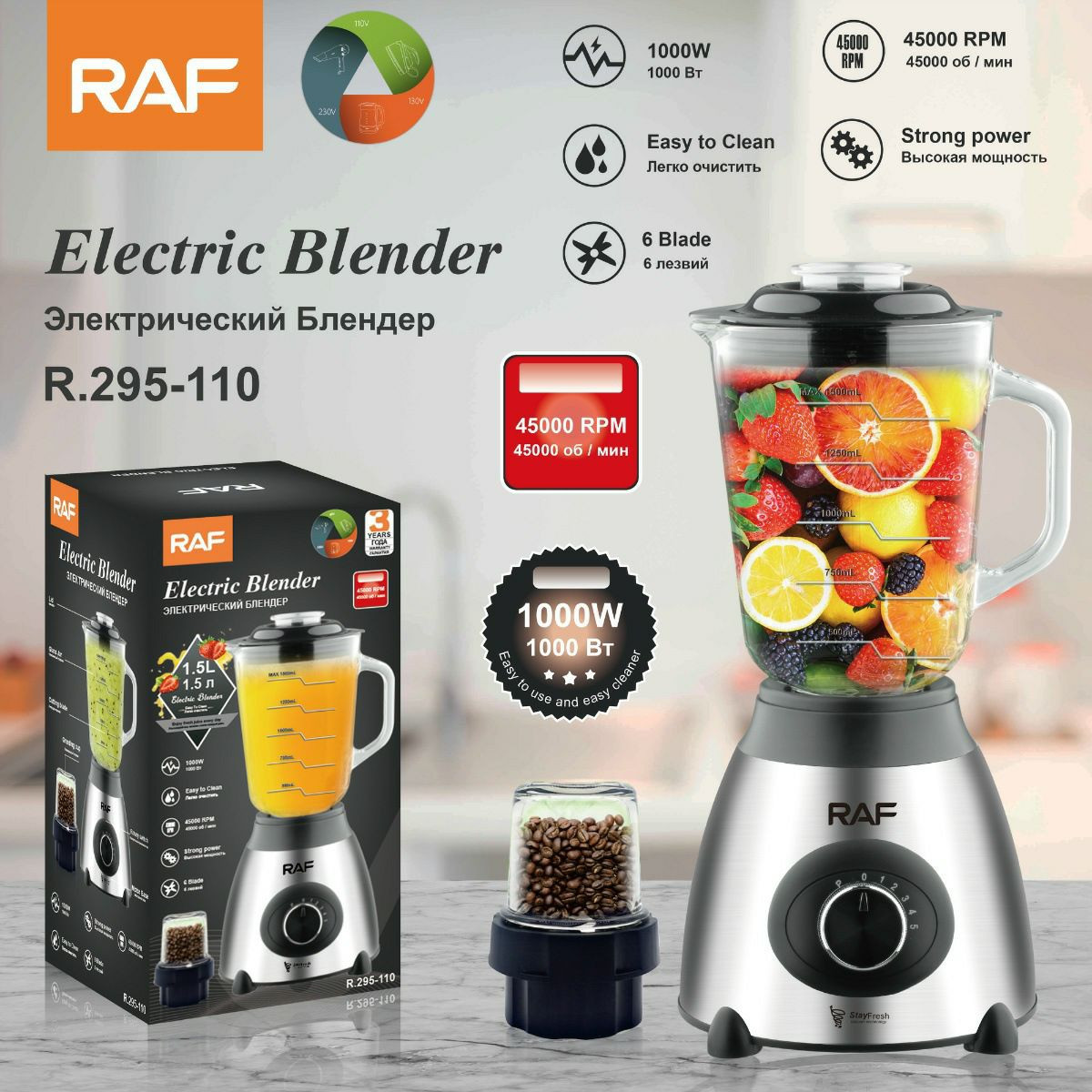 Mixeur Blender presse-agrumes électrique de marque RAF entièrement automatique Fruit and Végétales Juicer Machine de cuisine