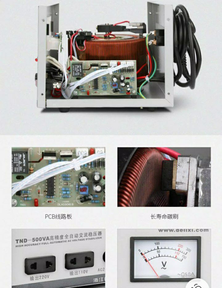 Un stabilisateur de tension CA entièrement automatique de haute précision Delixi TND-500VA. Régulateur de tension de l'ordinateur de marque: Delixi 220V entièrement automatique TND-500W Home ordinateur dédié TV Alide Alimentation