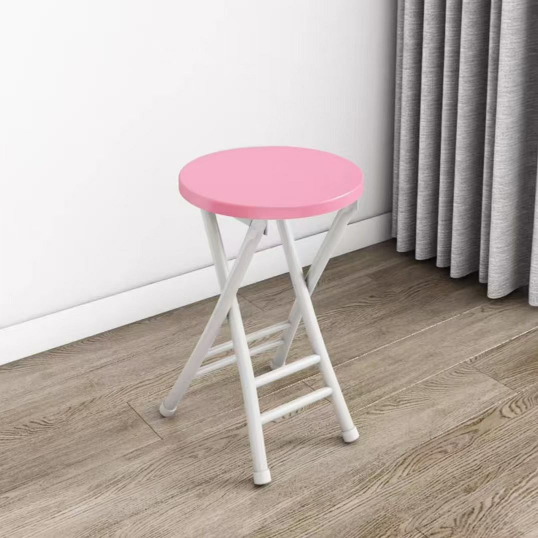 Tabouret pliant rond avec un plateau en bois et un cadre en métal portable de maison.