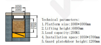 Le mini ascenseur GH0.25-6.85 est spécialement conçu pour offrir une solution pratique et accessible aux personnes à mobilité réduite. Avec une plateforme de 1000 x 1000 mm, il permet un déplacement sécurisé et confortable avec une hauteur de levée de 6000 mm. Idéal pour les espaces résidentiels ou commerciaux, cet ascenseur dispose de deux portes sur la plateforme et d'une rampe fixe pour faciliter l'accès.