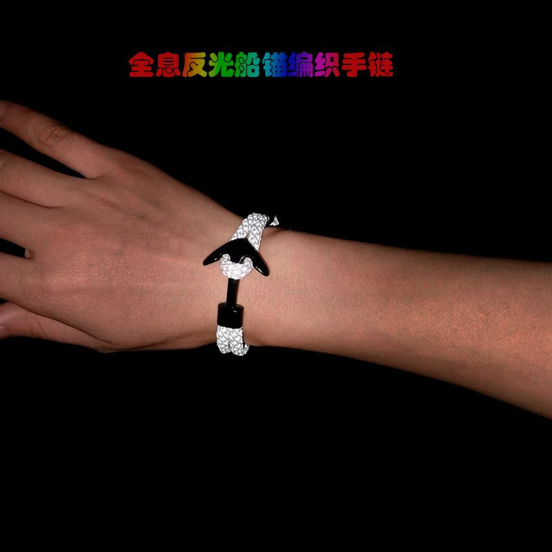 Bracelet en corde tissé d'ancre réfléchissante holographique transfrontalière série marine tissée rétro couple bracelet natal pour hommes et femmes
