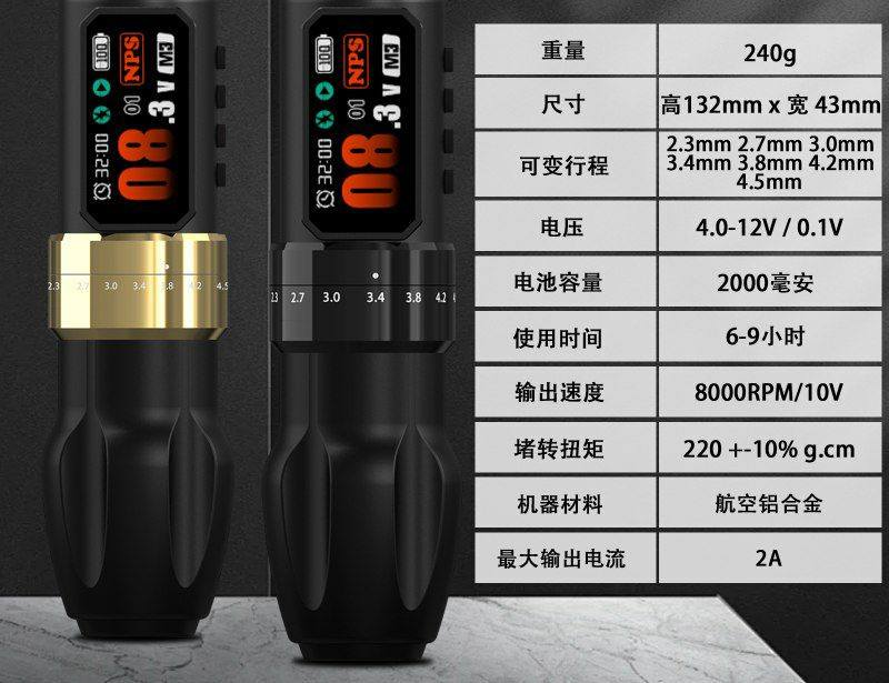 Fonctionnalités : Comprend des options de réglage du voltage et des modes doux/durs pour s'adapter au style du tatoueur.