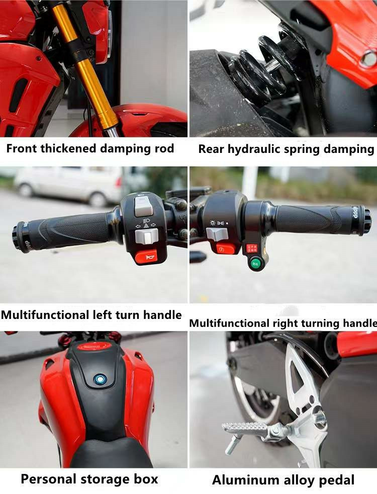 Moto électrique V8 Moto électrique de 17 pouces 72V Moto électrique de 2000W Moto électrique à alimentation directe moto électrique urbaine transfrontalière