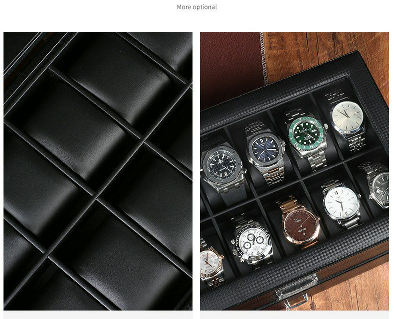 Double couche pu 24 bits boîte de rangement de montre boîte à bijoux en fibre de carbone boîte d'affichage de bracelet boîte-cadeau bracelet