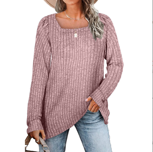 Hauts pour femmes automne et hiver nouveaux produits col carré bande de fosse brossé décontracté version longue T-shirt européen et américain femmes